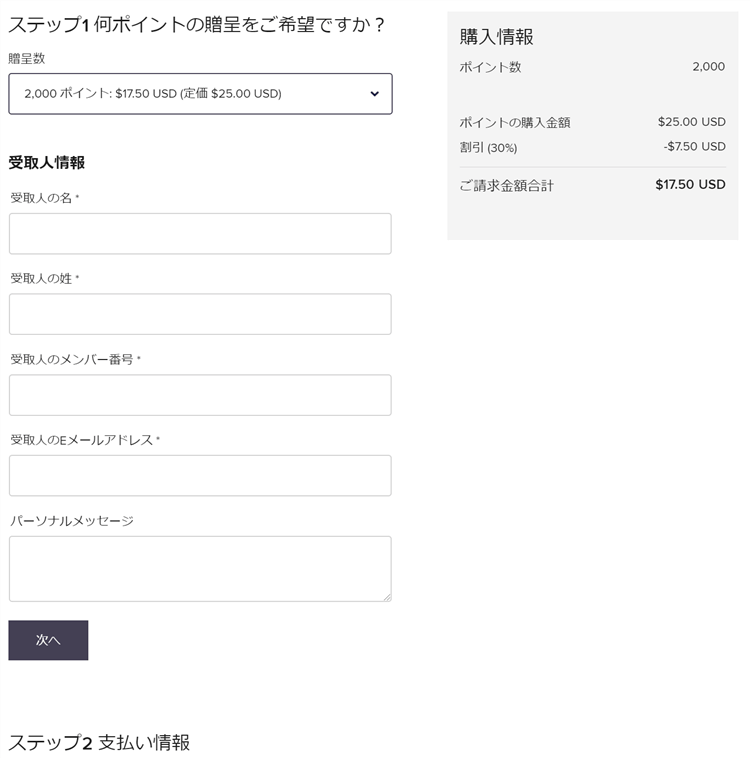 次はマリオットポイントを購入し、そのポイントを会員にプレゼントする方法を紹介します。