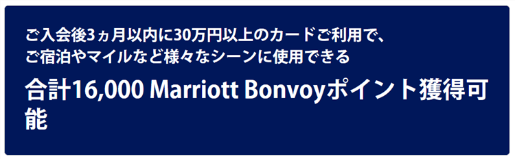 まず最初にマリオットアメックスの公式サイトから発行した場合、貰えるポイント、条件はこのようになります。