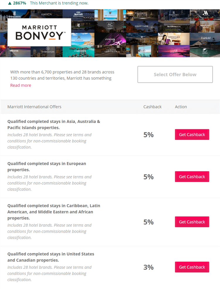 「TopCashBack」という最大手のものですが、こちらはマリオットのポイント購入の際にも活用が出来るようになっています。