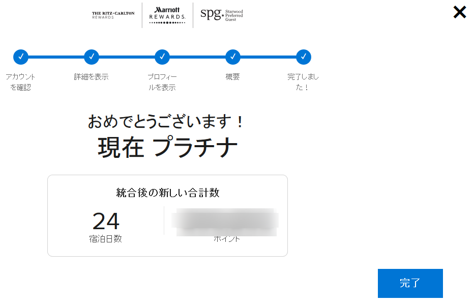 ちなみに私はマリオットにてプラチナチャレンジをしているのでプラチナステータスなのですが、統合後はプラチナプレミアエリートになるはずが、ここではプラチナエリートの表記となっています。