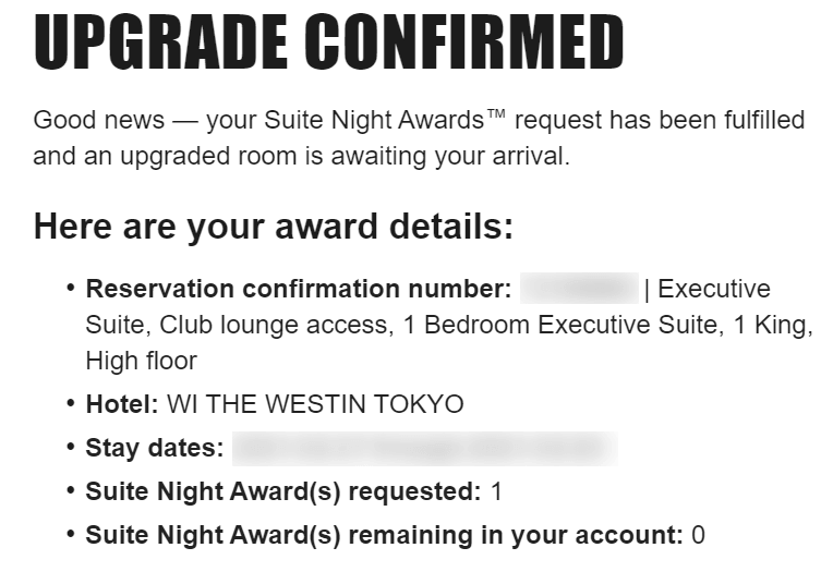 すごく簡単にまとめると、このアワードを利用することによって事前にスイートルームにアップグレードをしてくれるという素晴らしい特典になります。