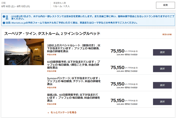 公式サイト以外からの予約の場合、マリオットポイントは貯まらないのでそこだけは注意してくださいね!!