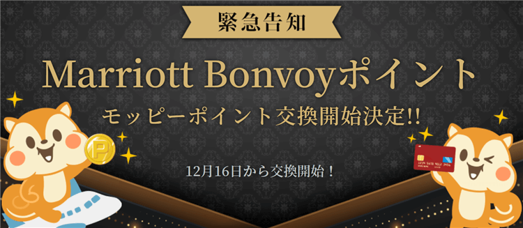 2020年12月16日からなんとモッピーのポイントをマリオットボンヴォイポイントに交換することが出来るようになります!!