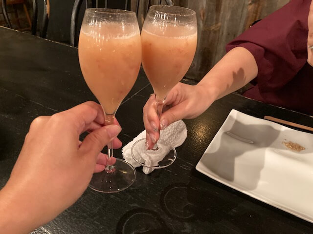 スパークリングと桃を合わせたもので、まるでジュースのように甘くキリっとしていた。
