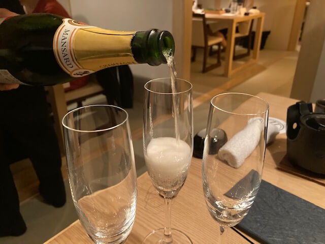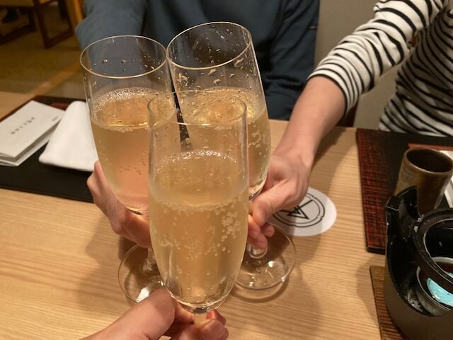 せっかくなので、ここはシャンパンをボトルで入れさせてもらい、三人で乾杯。