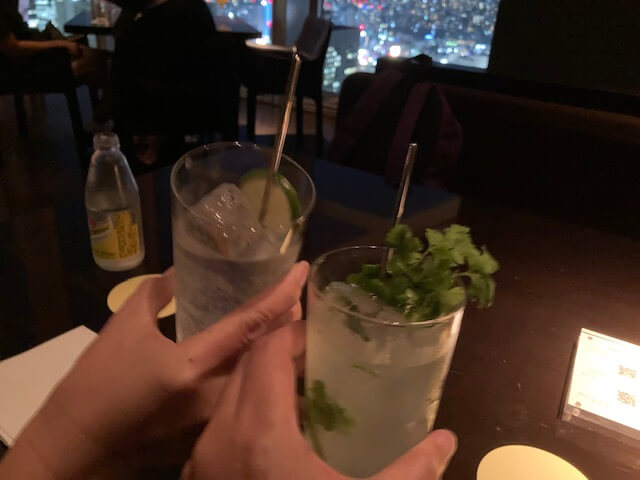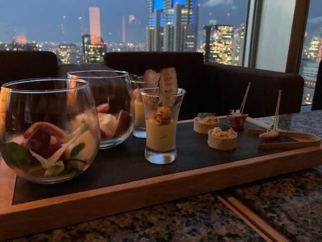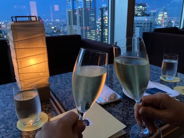 新宿の移りゆく景観を楽しみつつ料理が運ばれてくる。