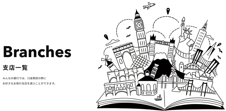 みんなの銀行で口座開設をする際に好きな支店を選ぶことが出来るようになっていますよ!