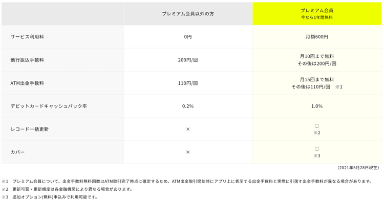 出金手数料は110円からかかるけど、プレミアム会員なら10~15回まで無料!今なら1年間無料利用OK!