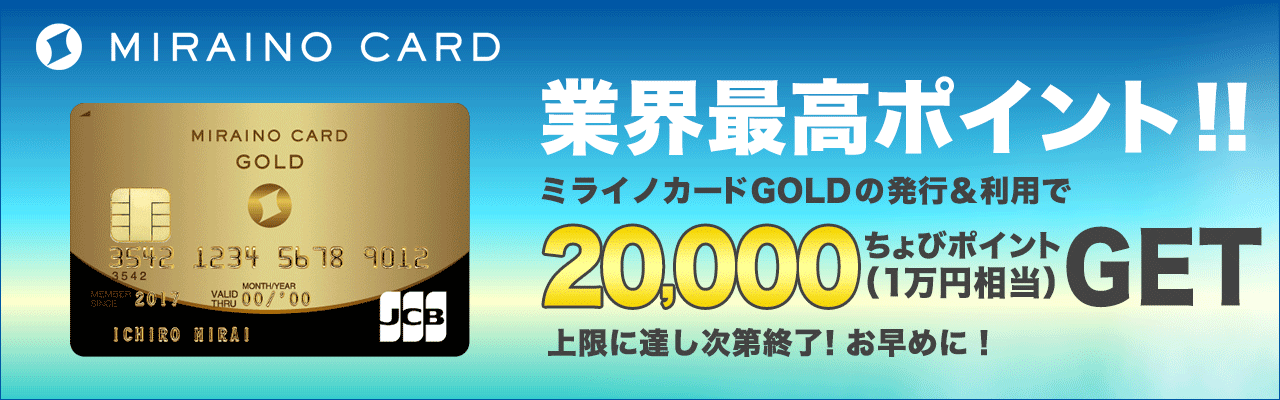 格安で持てるゴールドカード「ミライノ カード GOLD」。住信SBIユーザーならランクアップもあり!更に20,000P(10,000円相当)を貰おう!