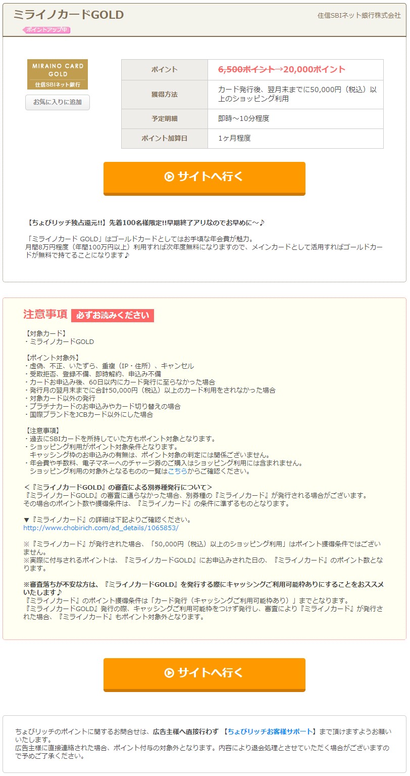 また、ミライノ カード GOLDで貰えるポイント数はポイントサイトの中でも過去最高額となっていますね!!