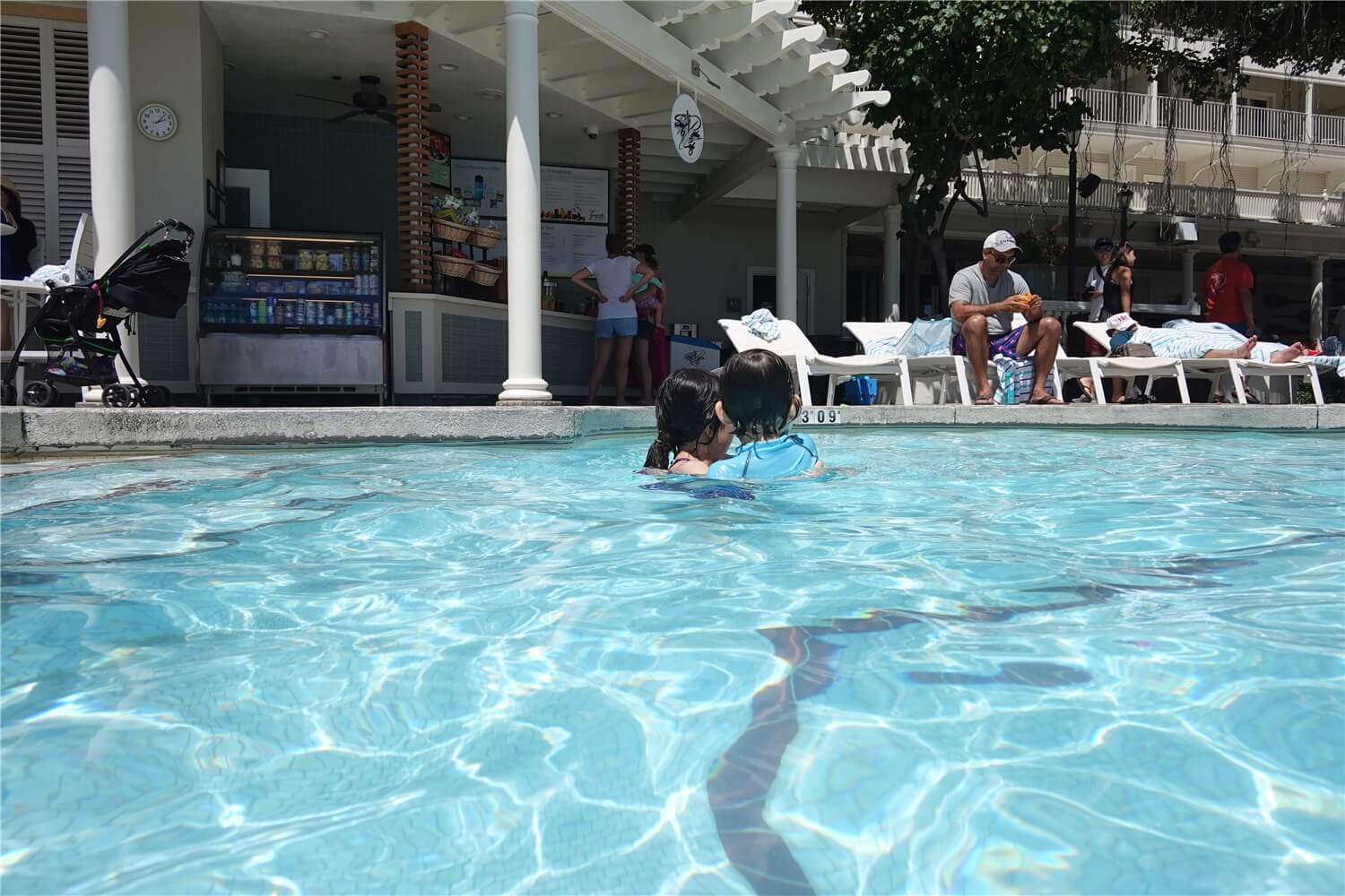 私たちはホテルにチェックインをした後はというと、荷物をすぐに置いてプールに向かいました!!