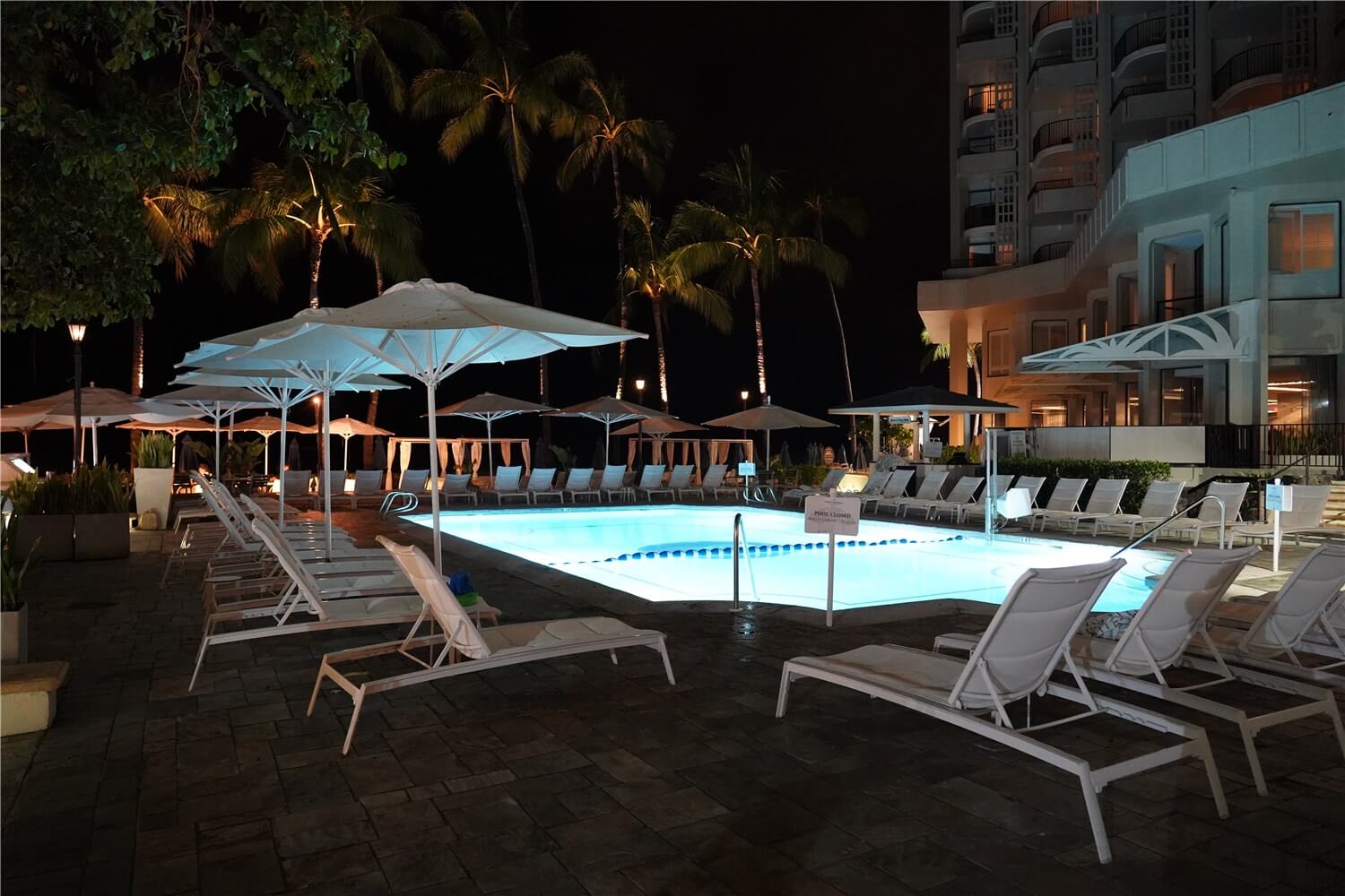 夜になるとプールはクローズします。