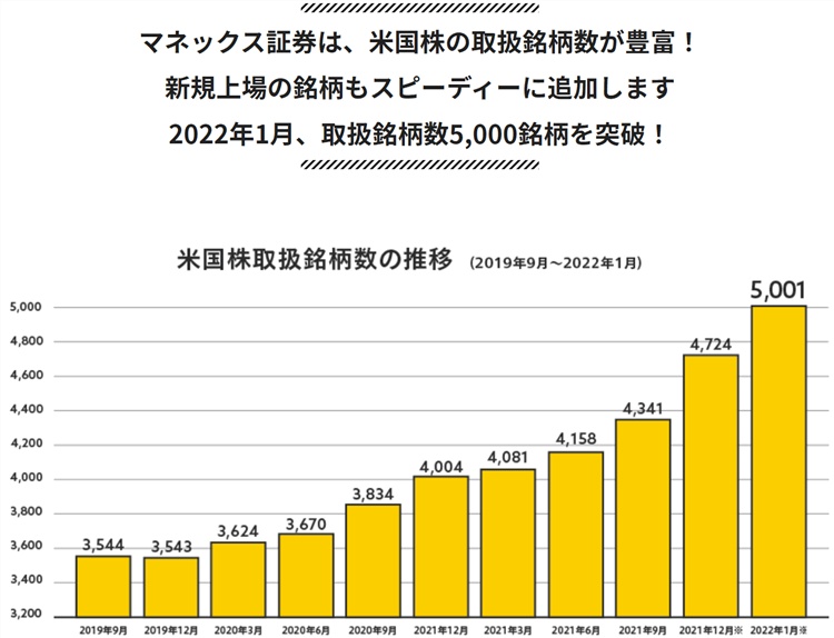 マネックス証券は、米国株の取扱銘柄数が豊富