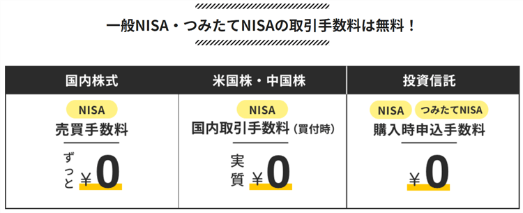 - NISA買付時国内取引手数料(税込)が実質無料!
