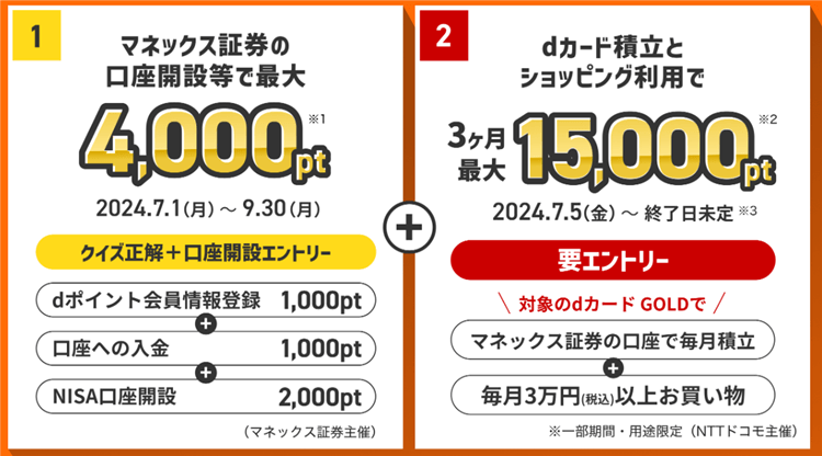 そしてマネックス証券の口座開設をすると今ならdカードのキャンペーンがかなり激アツです!!