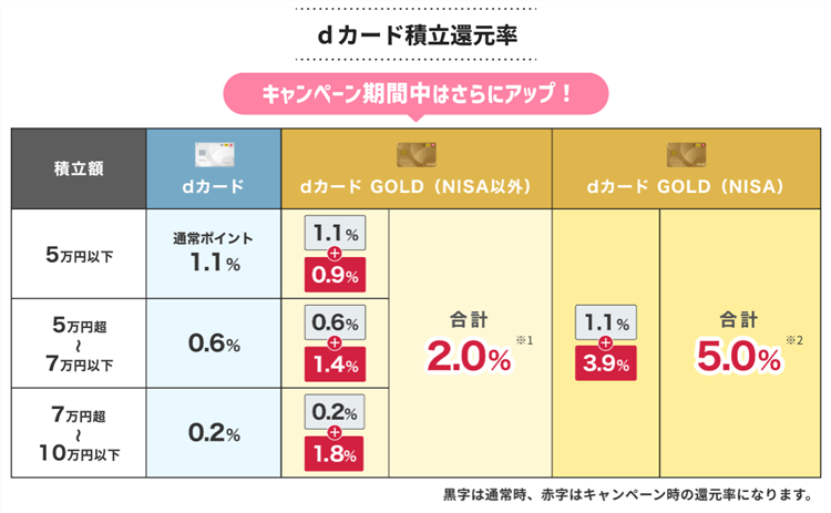 >>dポイントで積立キャンペーンで最大19,000dポイントの詳細はこちら