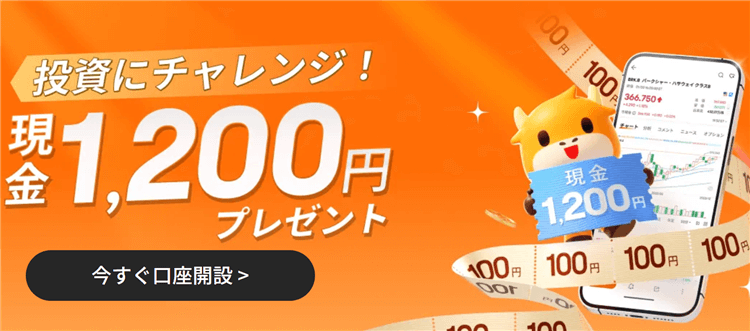 また今回ですが新規口座開設で現金1,200円プレゼントが実施中です。