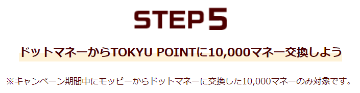 条件5:ドットマネーからTOKYU POINTに10,000マネーを交換された方