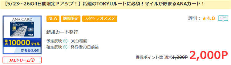 ちなみにポイントサイトのポイント推移ですが、600~2000円相当で推移していますので発行を検討している方はチェックしておくといいですよ!!