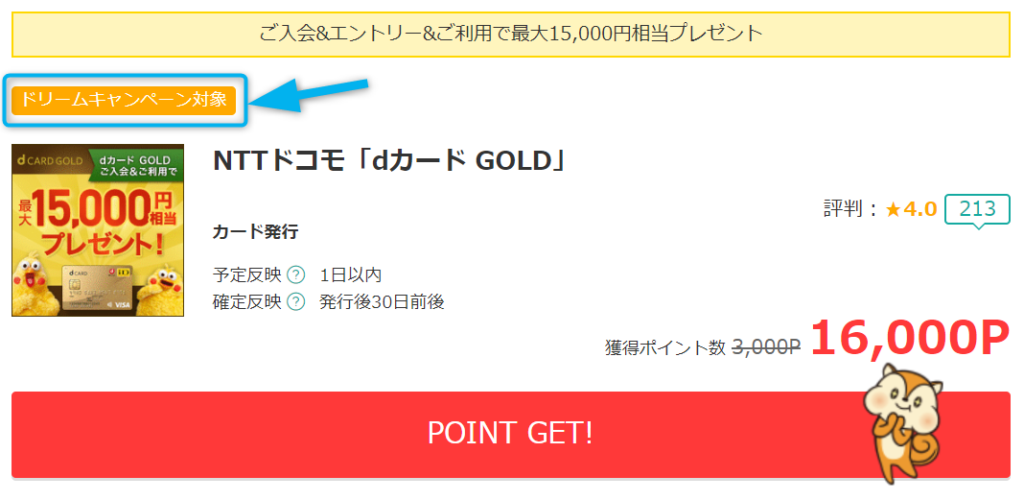 いつものお馴染みの案件なんですが、左上に「ドリームキャンペーン対象」というマークがあるのが分かりますか??