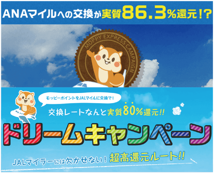 そして現在、モッピーではドリームキャンペーンというキャンペーンを昨年からスタートしており、こちらを適用した場合80%でJALマイルに交換が出来るようになったんです!!