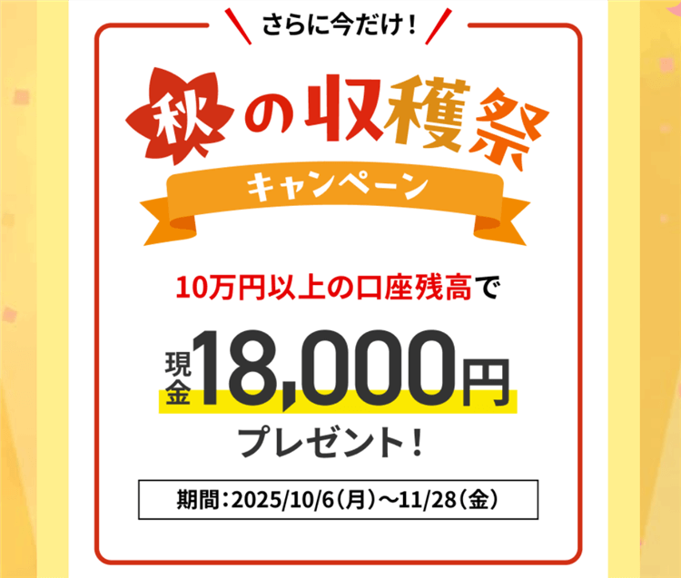 アプリでの新規口座開設&10万円以上の口座残高で現金18,000円プレゼント対象者
