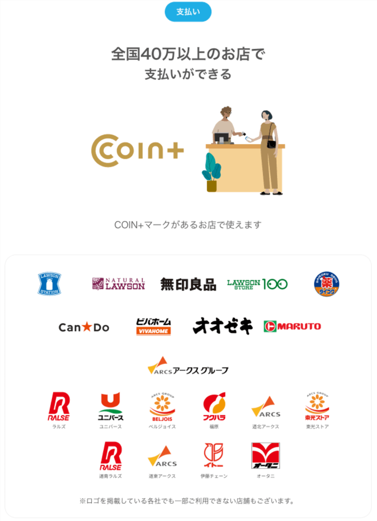 更にこのエアウォレットアプリですがCOIN+という三菱UFJの決済サービスを利用しており、提携店での支払いも可能!!