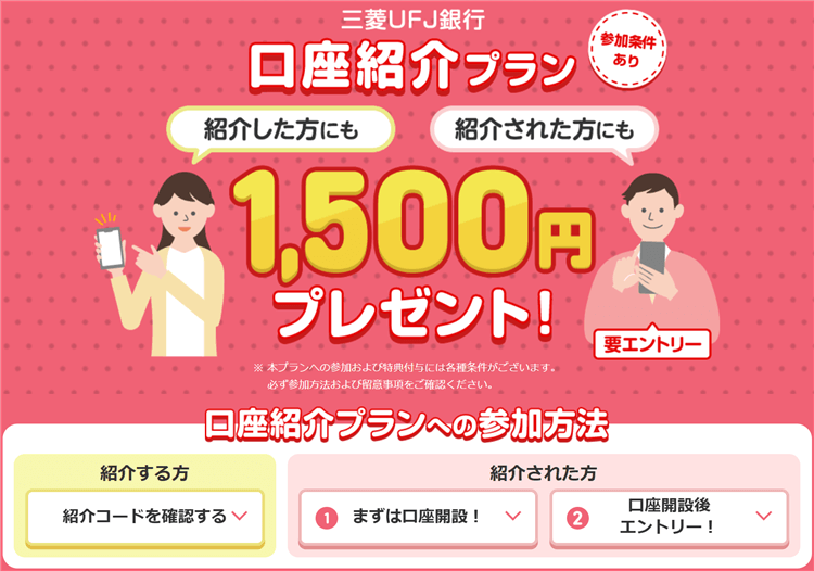 ※三菱UFJ銀行が主催するキャンペーンのうち、本件と併用できないキャンペーンに参加(エントリー、特典受取等)している場合