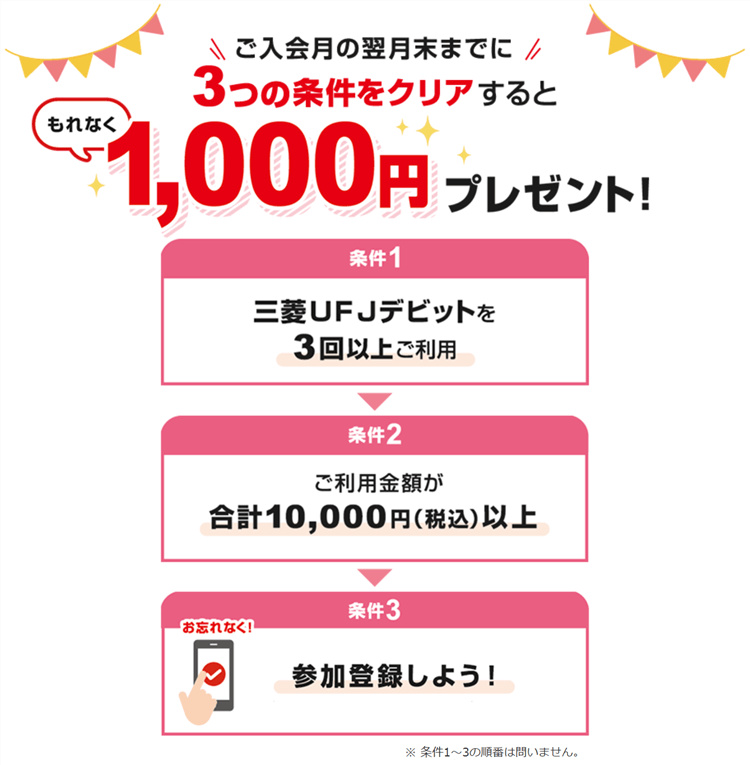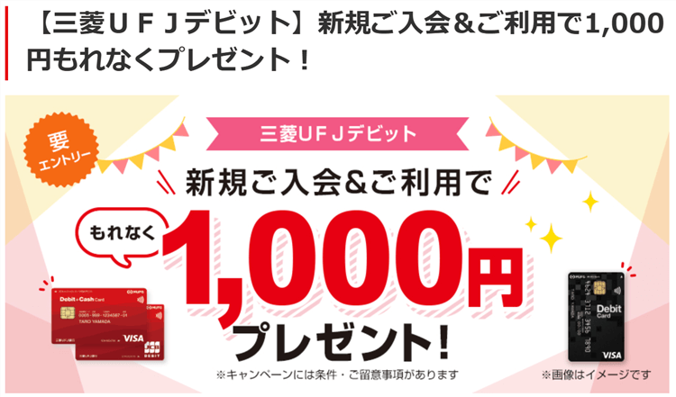 【三菱UFJデビット】新規ご入会&ご利用で1,000円もれなくプレゼント!