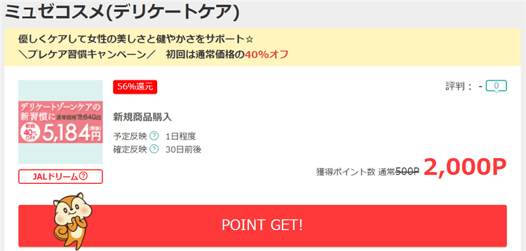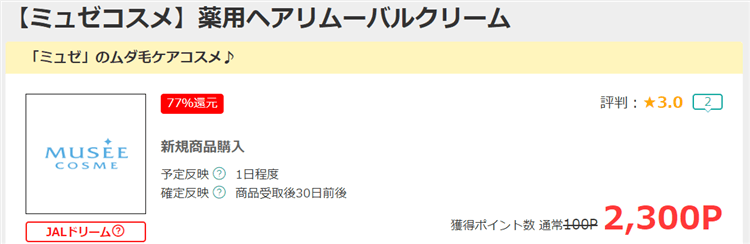 こちらは初めてこの商品を購入した方に対して、モッピーから2,300Pが貰えちゃいます!!