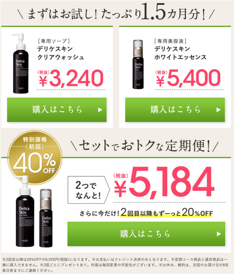 - デリケスキンクリアウォッシュ:3,564円(税込)