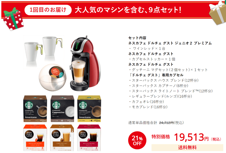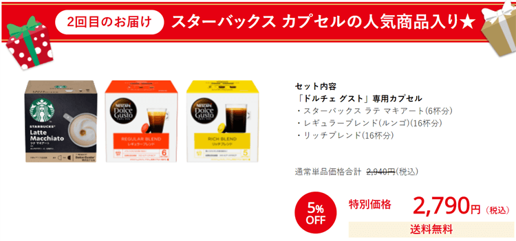※「ネスレ 年末大感謝!コーヒー祭り」を申込み購入後、初回の商品受取で対象となります。