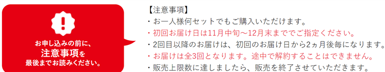 ・お届けは全3回となります。途中で解約することはできません。