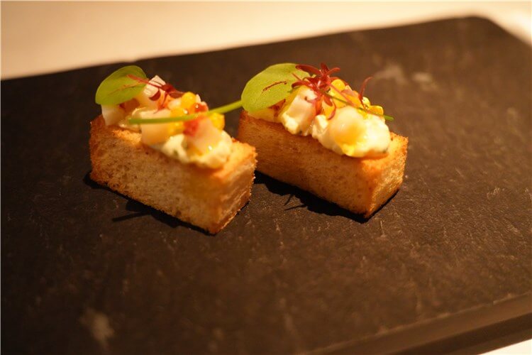 サステナブルカナディアンロブスタートースト オリーブオイルキャビアとグリビッシュソース