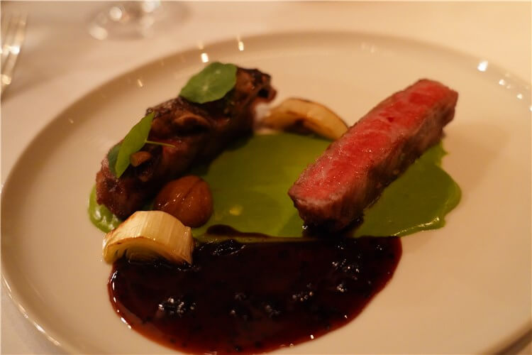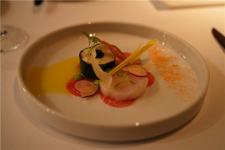 続いてはロブスターのバロティーヌとホタテです。キャビアが乗っててキャビアの味もしっかり楽しめながら、ロブスターも楽しめる品のいい逸品でした!