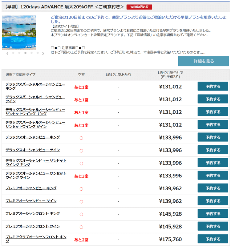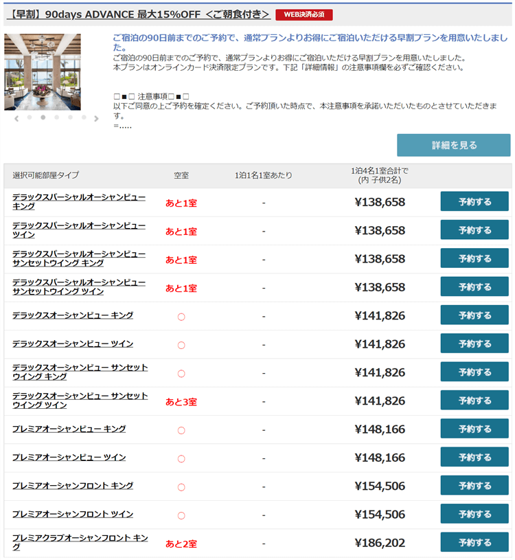 更に公式サイトでは様々なプランがあり、その中でも早期割引プランというものが一番お得に予約が出来ます。