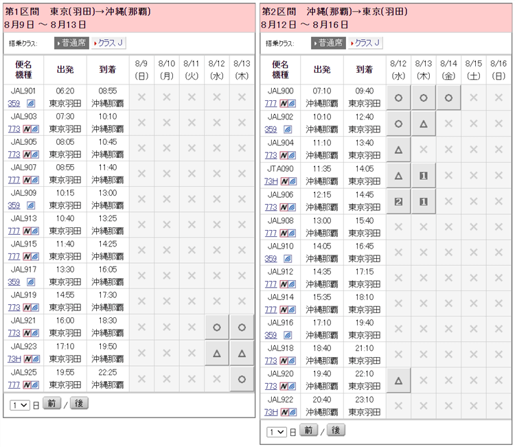JALの方がまだ特典航空券の枠が多いのが分かります。