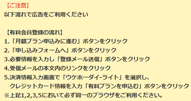 ※必ず「会員登録してウケホーダイを申込む」ボタンから会員登録と有料申込みを同時に行ってください。