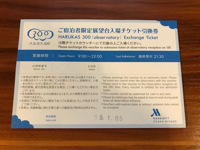 宿泊者限定!あべのハルカス展望台チケットが無料で貰える!