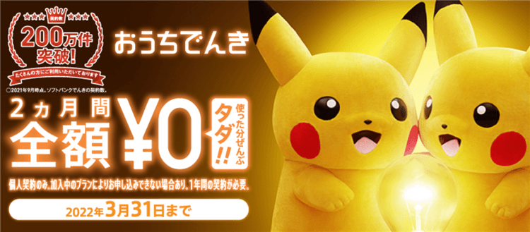 「おうちでんき 冬のでんき代節約キャンペーン2022」で2か月分の電気代が無料!!タダ!!!