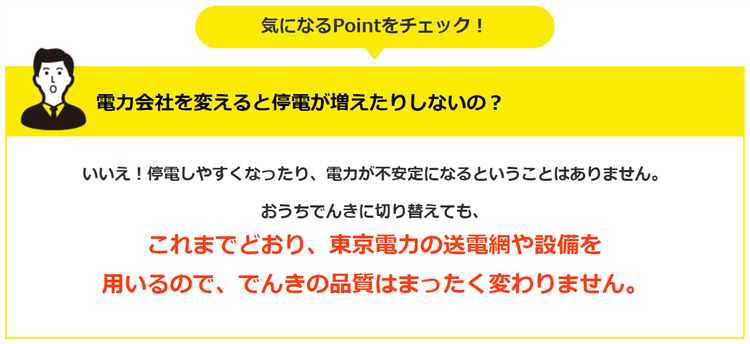 つまり東京電力と同じ品質なので特に電力が不安定になったり停電になったりすることもないんですよ。