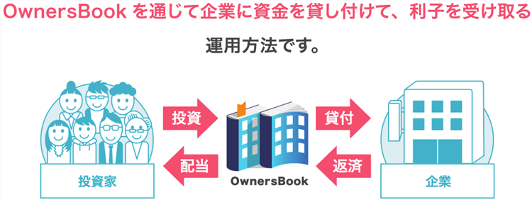 不動産を持っている企業に対して、OwnersBookが私たち投資家の投資金を企業に貸し付けるという感じですね!