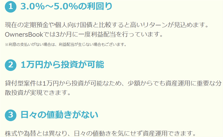 色々とこの手の会社はあるのですが、OwnersBookは少額から利用できるのがメリットです。