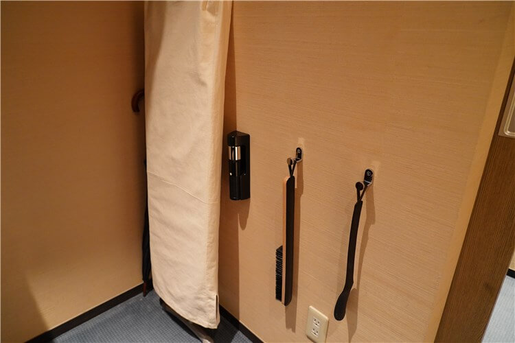 入って手前奥には、アイロン台、傘、靴ベラ、ブラシがセットされています。