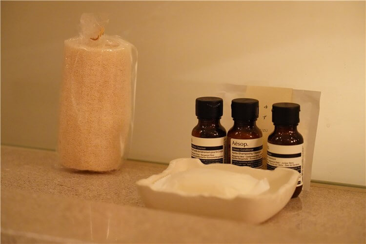 右手にはハンドタオル、パークハイアットお馴染みであるAesopの石鹸がありますね!