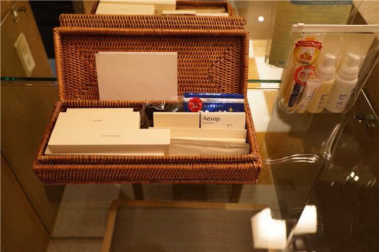 左手にはアメニティ類がかごに入ってキレイにしまってあります。