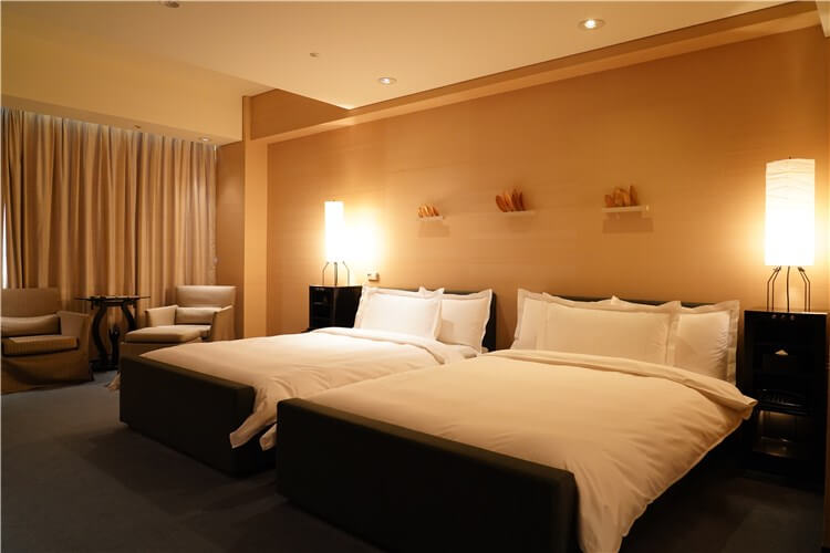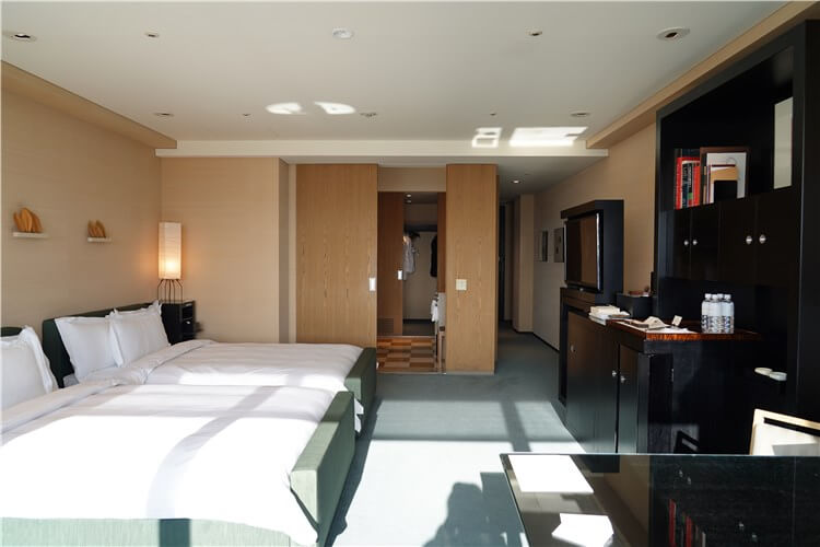 デラックスルームツインのベッドルーム全体像!広々とした空間が素晴らしい