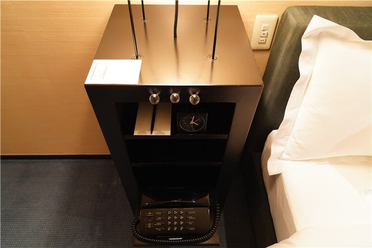 手前側にはミニテーブル的に出てきてる箇所にはミネラルウォーター。