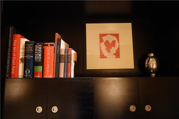 大きなチェストの上段にはインテリアを含んだ書籍がセットされています。