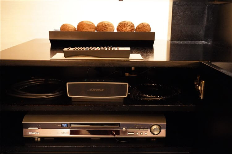 まずテレビの下にある扉を開けると、こちらにはDVDプレーヤーやスピーカーが収納されているんですよね。